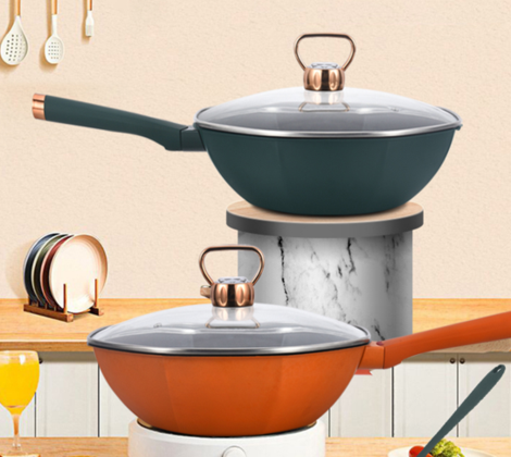 麦饭石八角不粘炒锅套装